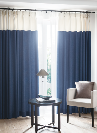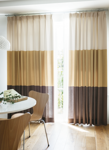 ボーダーのカラーを選ぶことにより、独自のカーテンを作ることができます。お好きなカラーとボーダースタイルで組合せを楽しむこともできます。