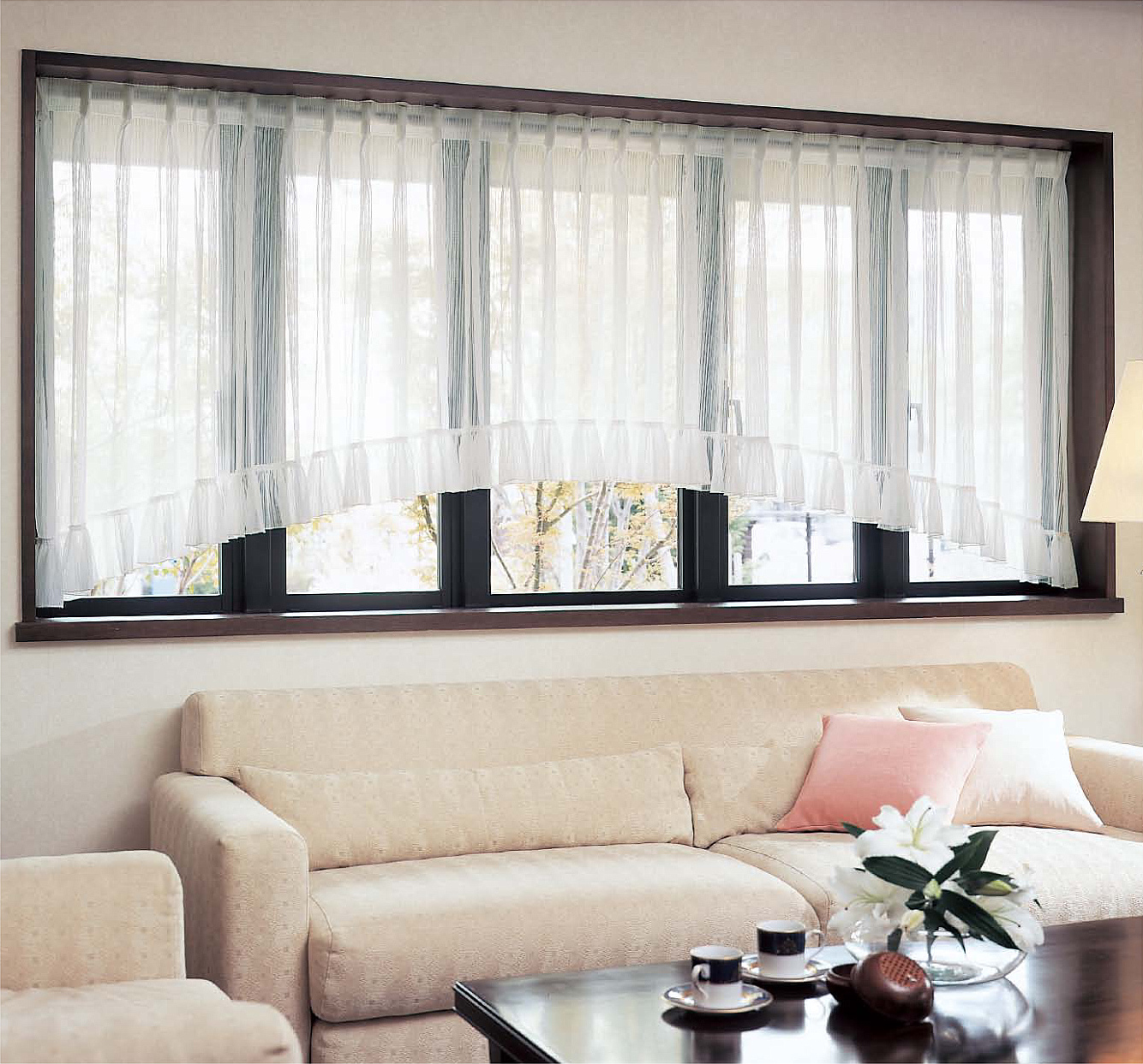 裾の形がシンプルなアーチ型です。すっきり上品な窓辺になります。