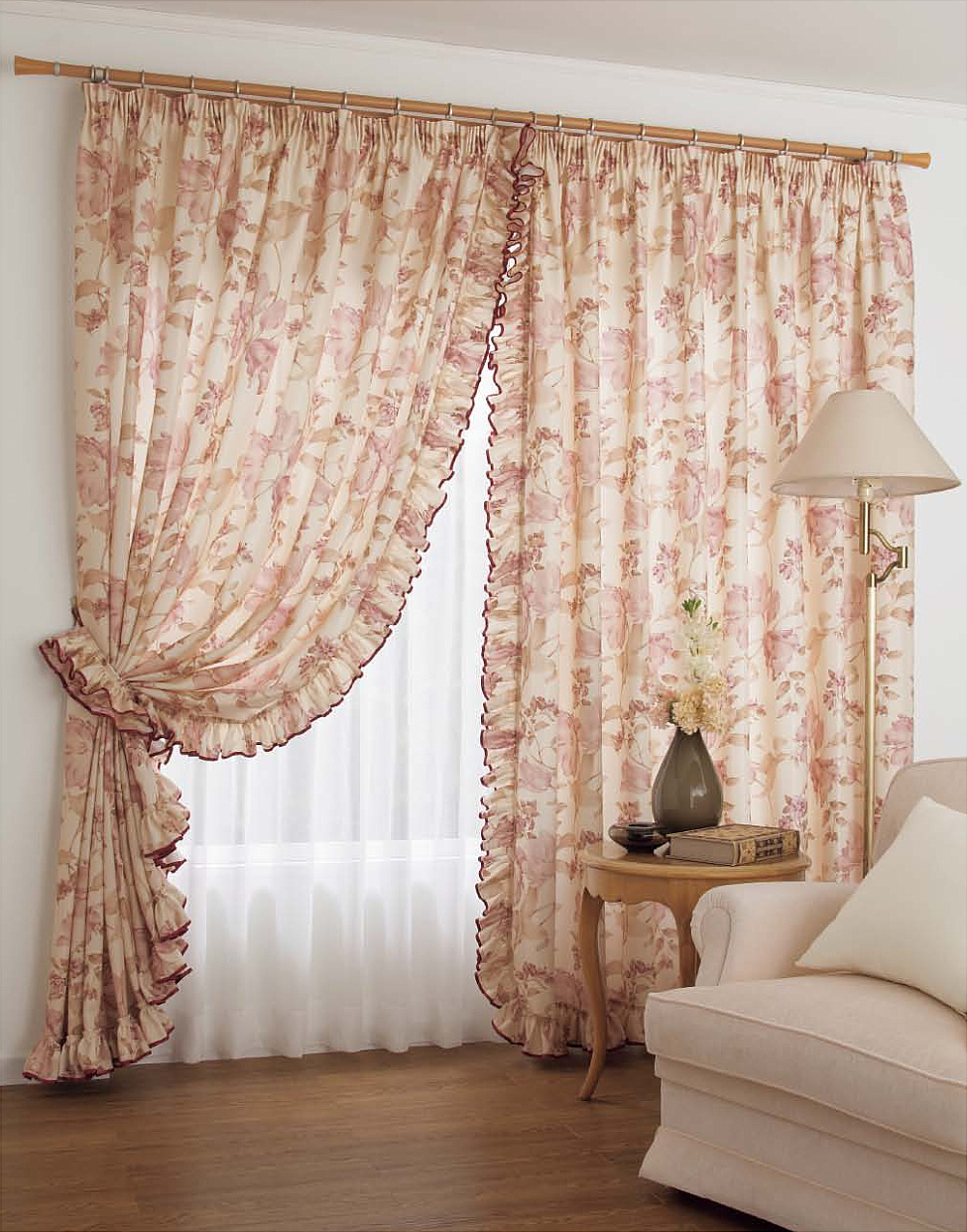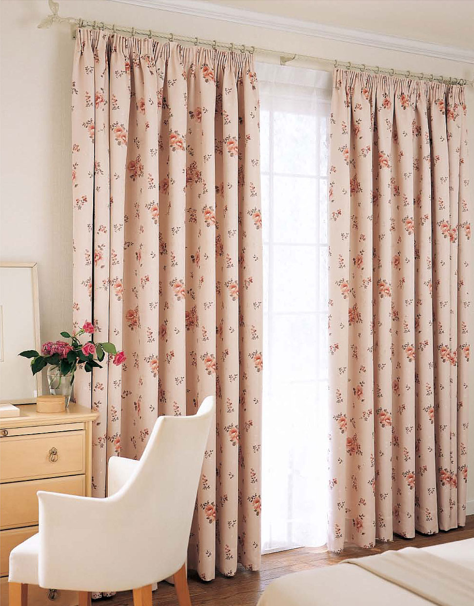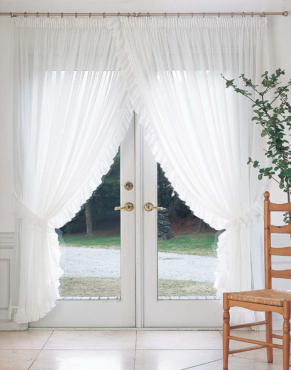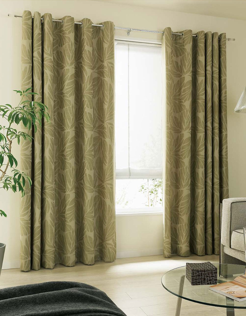 ヒダをたっぷりとったカーテンを中央1/3で重ね合わせたスタイル。